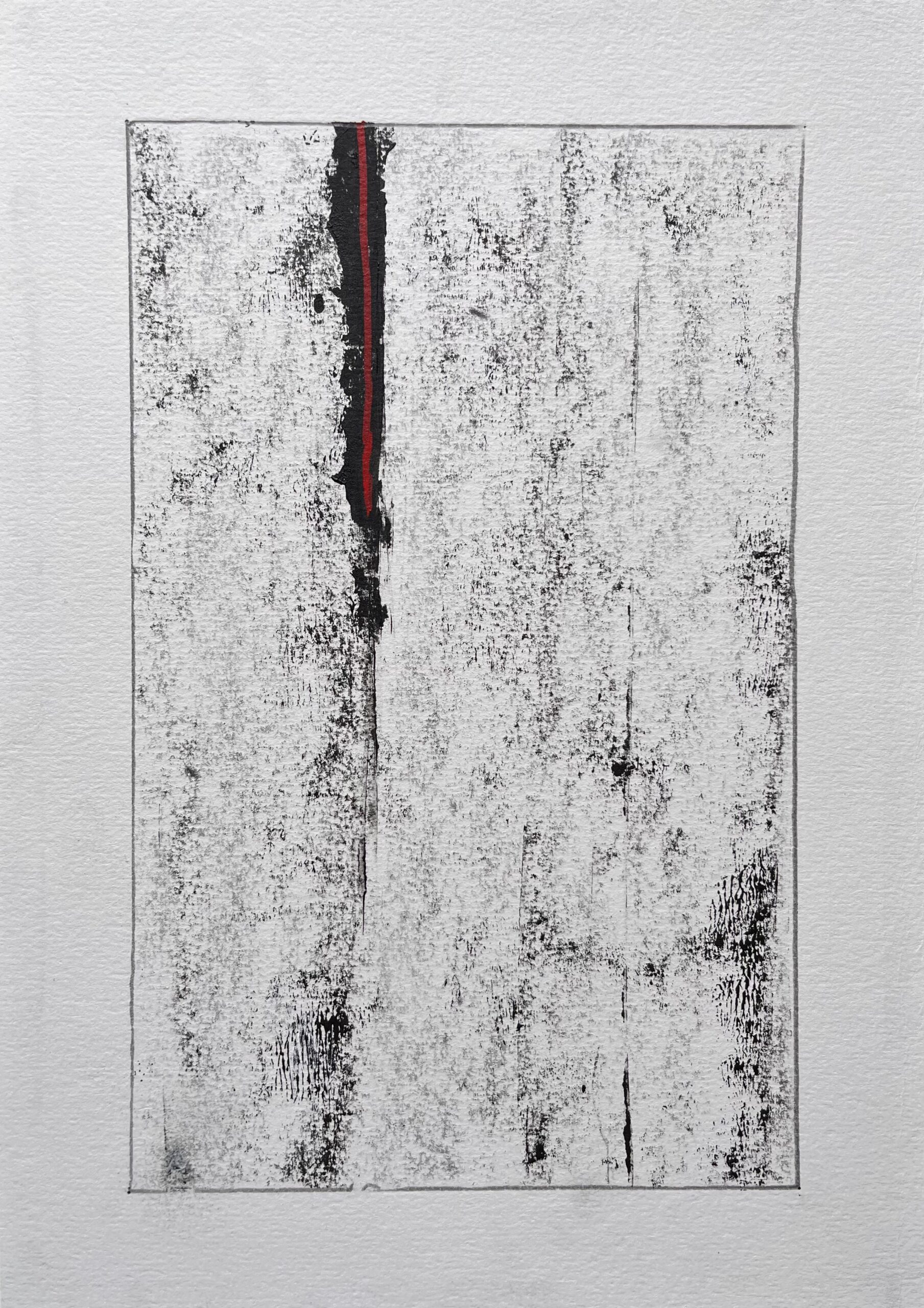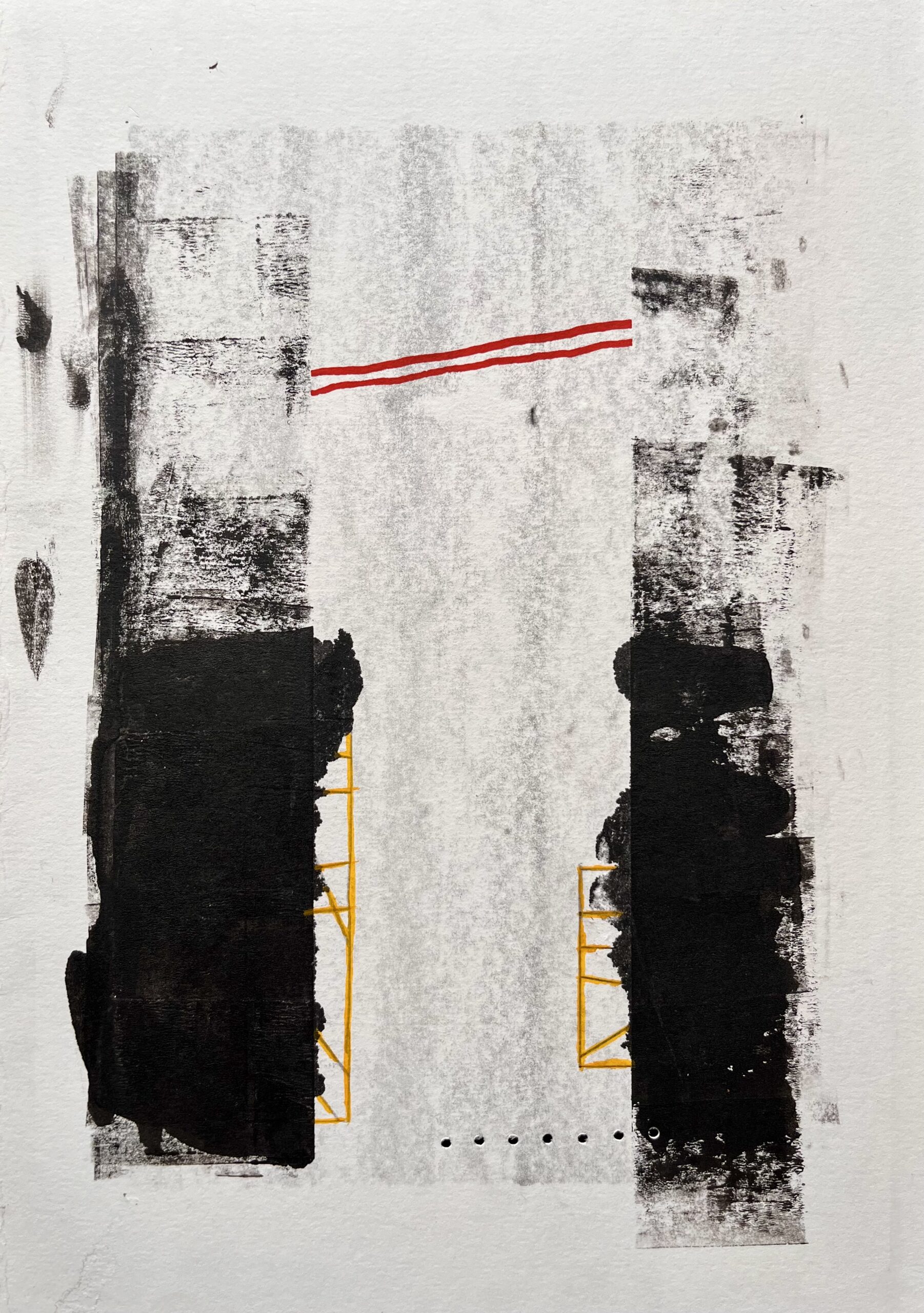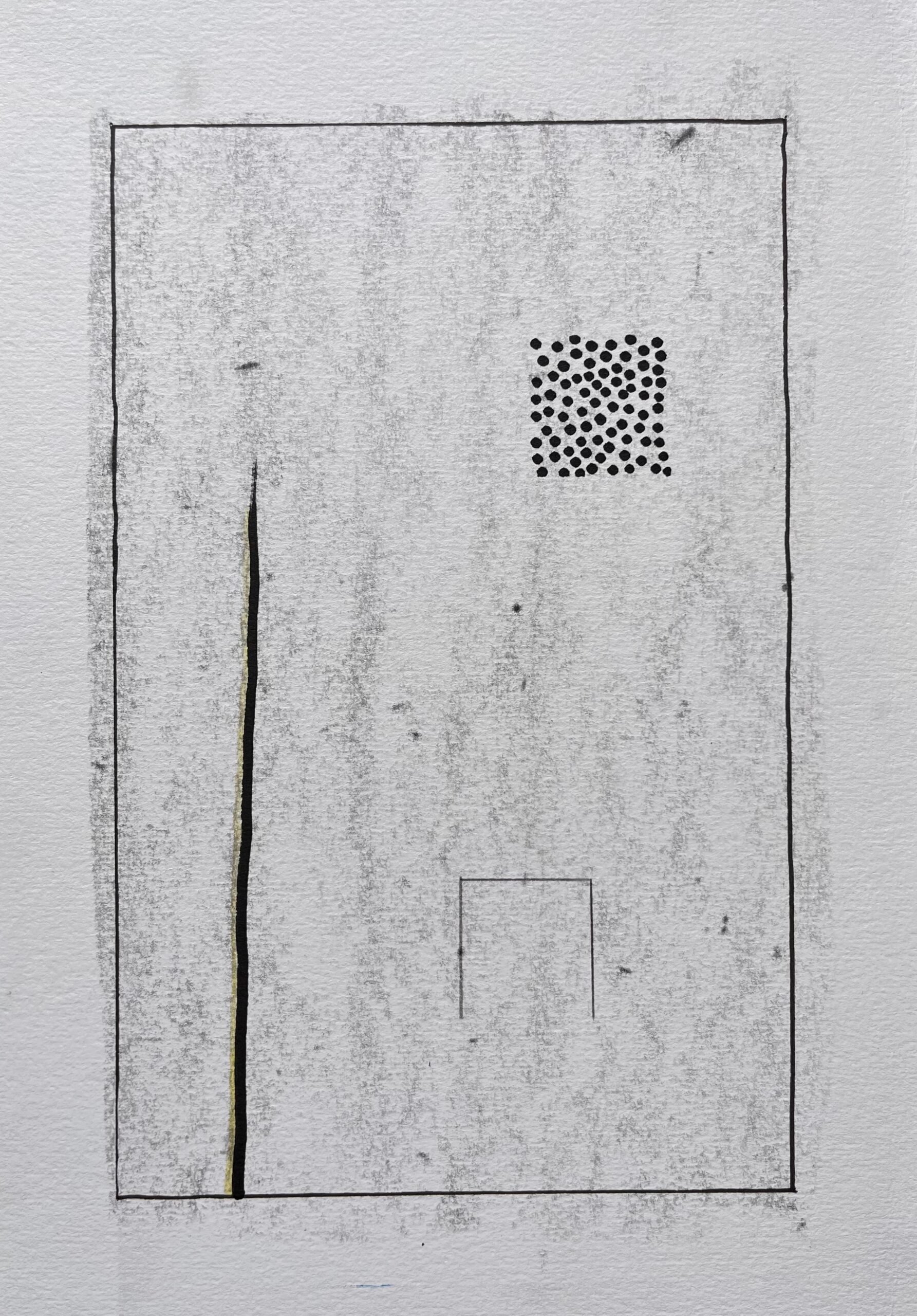 graphite, acrylic marker, acrylic paint, electrical tape on paper 300g