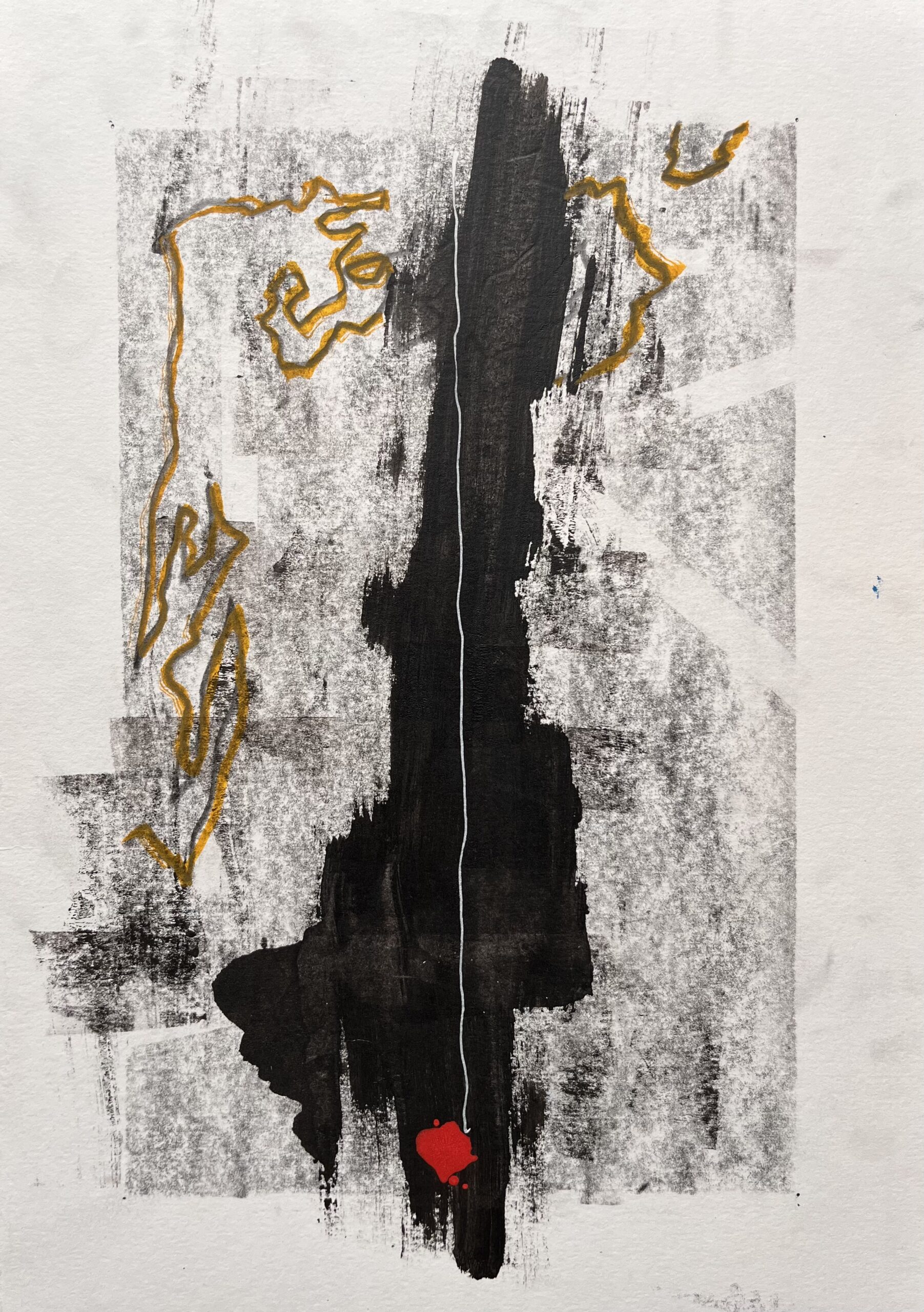 graphite, acrylic marker, acrylic paint, oil marker on paper 300g